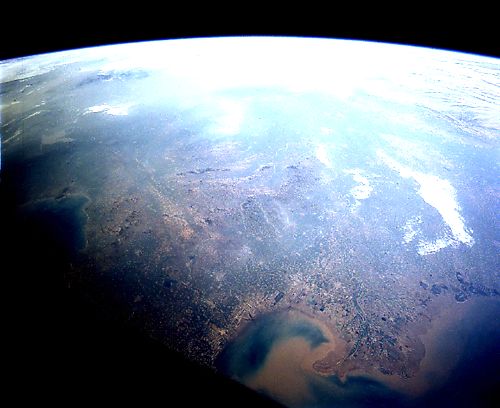 以下为近10年黄河三角洲的变迁遥感影象。点击后可浏览大尺寸照片。资料来源:NASA。